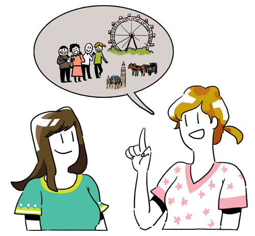 | B | 한밀의 부모님께서 한국에서 오셨어요. 그래서 같이 시내에 돌아다녔어요. 사실 저도 비엔나를 잘 몰라요. 그래도 제가 안내해드렸어요. |