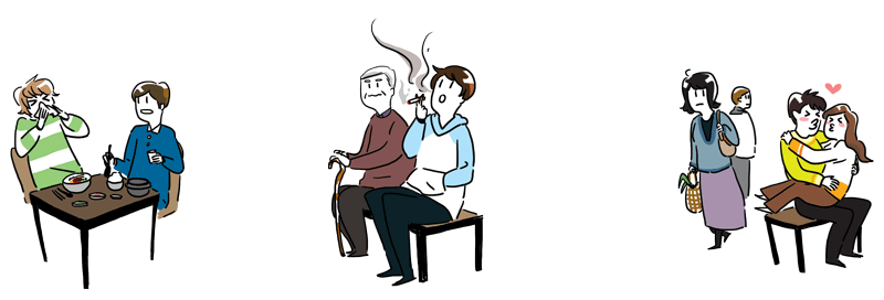 | 어른 앞에서 담배 피우는 | 좋지 않아요. | ||