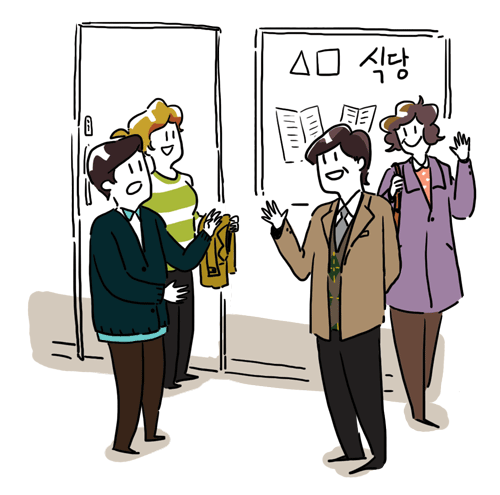 | B | 아버님, 어머님, 나중에 카페에서 맛있는 커피 드실래요? 커피 맛있는 곳을 알고 있어요. |