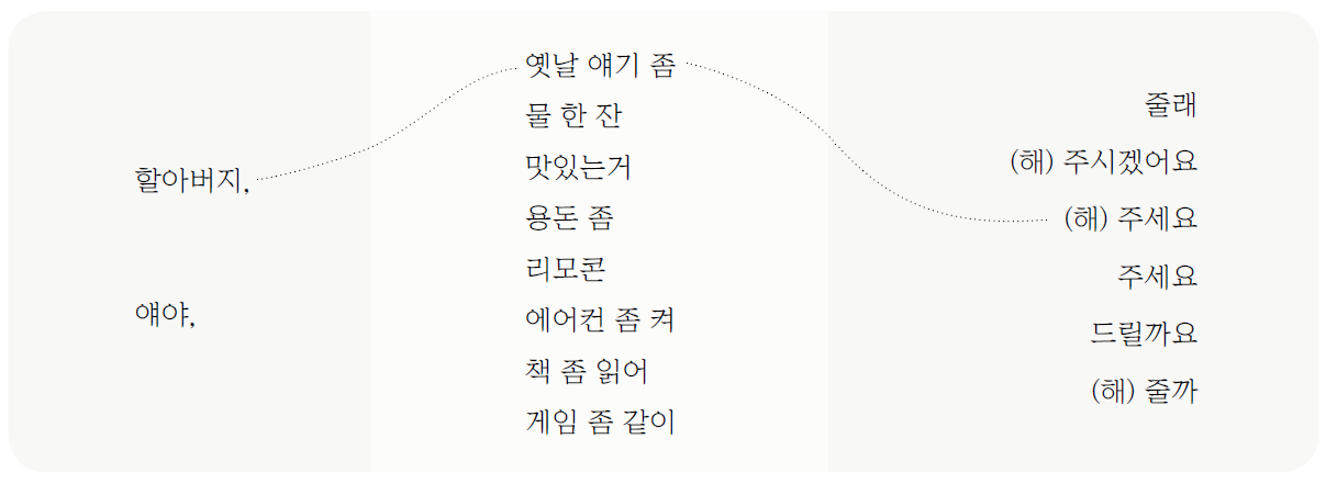 | 나 좀 집까지 | 포장해 | 드렸어요. |
